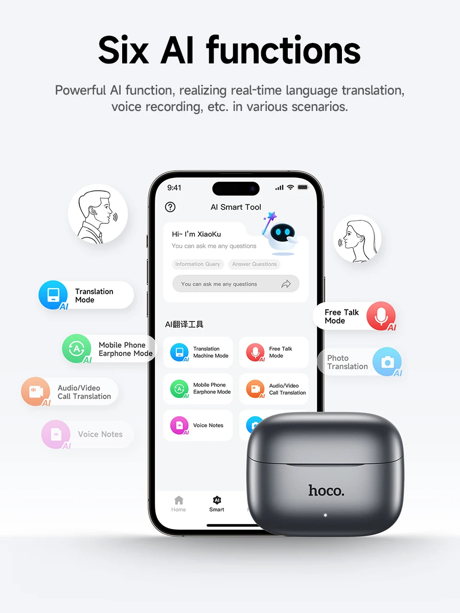 Upgrade your listening experience with the HOCO EQ27 AI ANC+ENC Smart Bluetooth Wireless Earbuds, designed for users who want smart features with premium sound. Equipped with AI-powered translation support and app connectivity, these earbuds are ideal for travel, work, and daily communication. Active Noise Cancellation (ANC) and Environmental Noise Cancellation (ENC) reduce background noise for immersive music and crystal-clear calls. With stable Bluetooth connectivity and HiFi stereo sound, the HOCO EQ27 delivers intelligent performance at a competitive price in Pakistan and is perfect to buy online at The Tech.