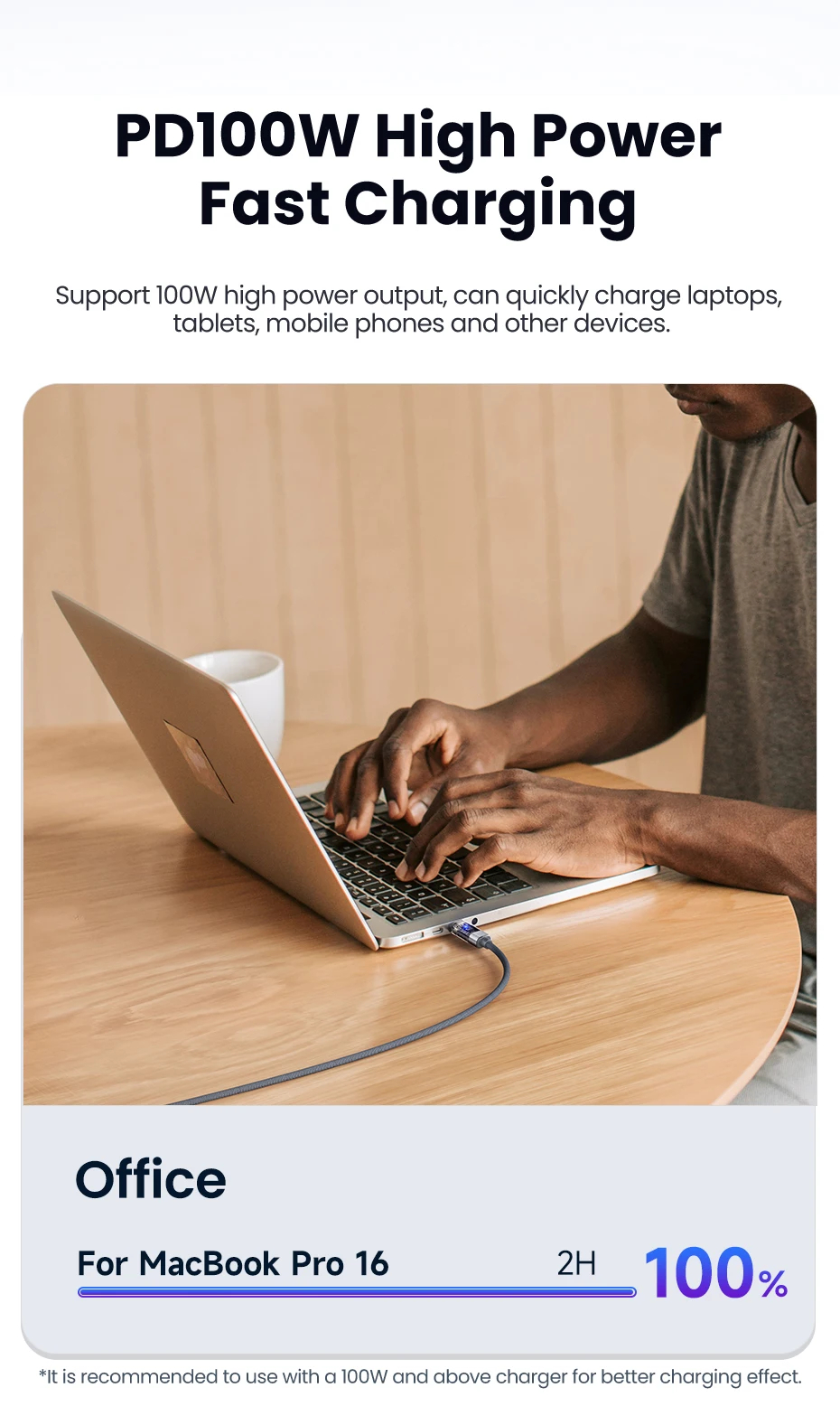 The Toocki PD 100W USB-C to USB-C Fast Charging Cable is built for users who want maximum speed, intelligent safety, and long-term durability. With 6A high current and full 100W Power Delivery, it easily charges smartphones, tablets, and power-hungry laptops like MacBook Pro and MacBook Air. Both 1m and 2m lengths deliver the same full 100W performance without any drop.