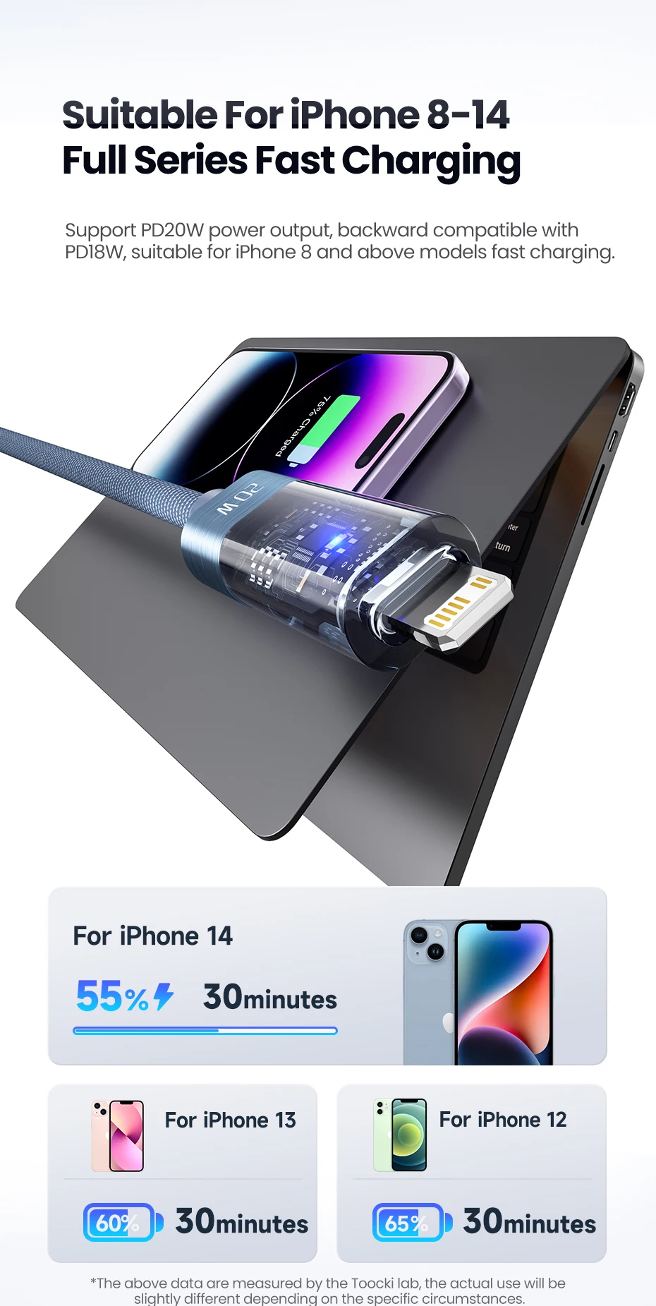 The Toocki PD 20W USB-C Fast Charging Cable with Automatic Power Off is the perfect accessory to power your Apple devices safely and quickly. Designed for iPhone, iPad, and AirPods, this cable supports 20W Power Delivery for rapid charging while intelligently automatically cutting off power once your device is fully charged — protecting your battery health and preventing overcharging.