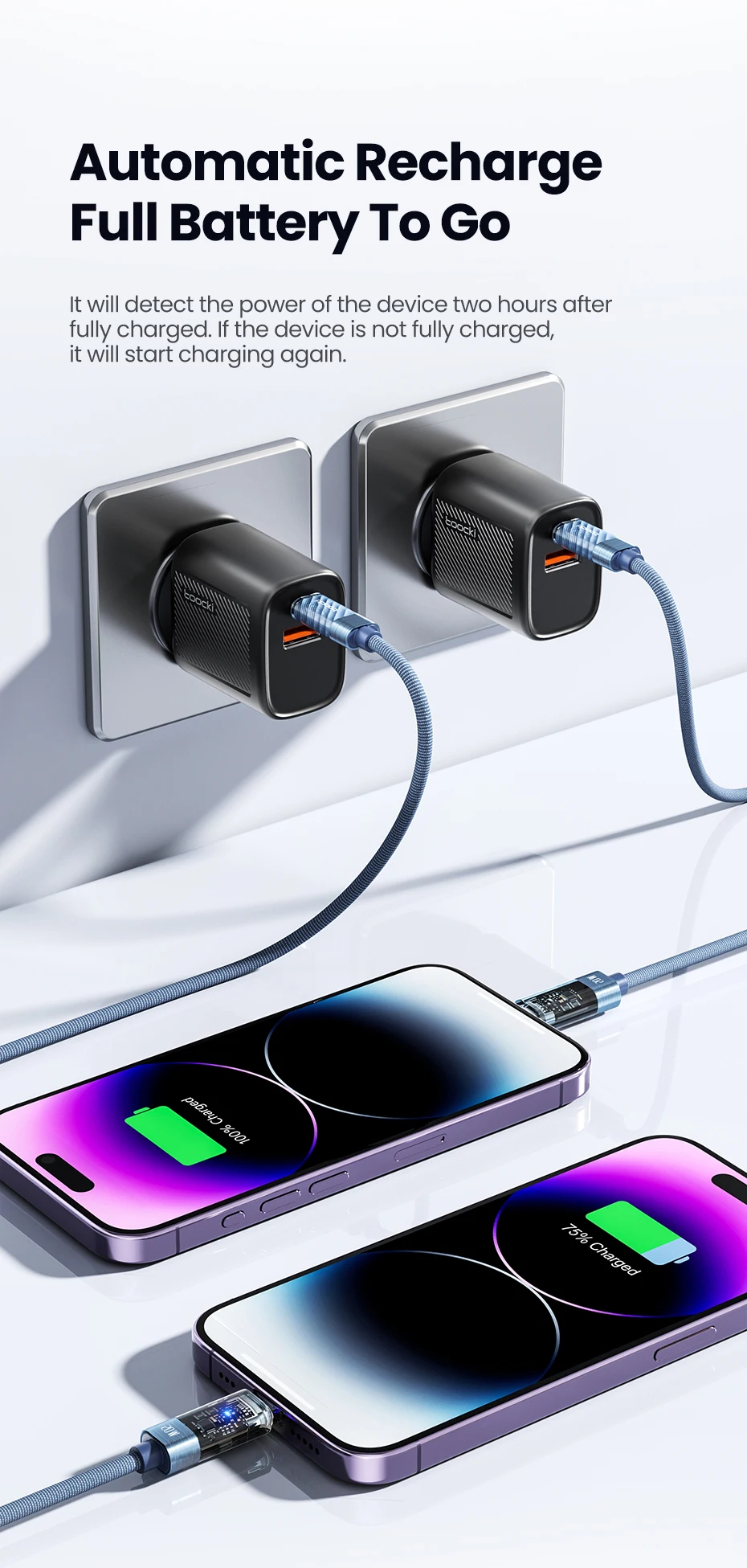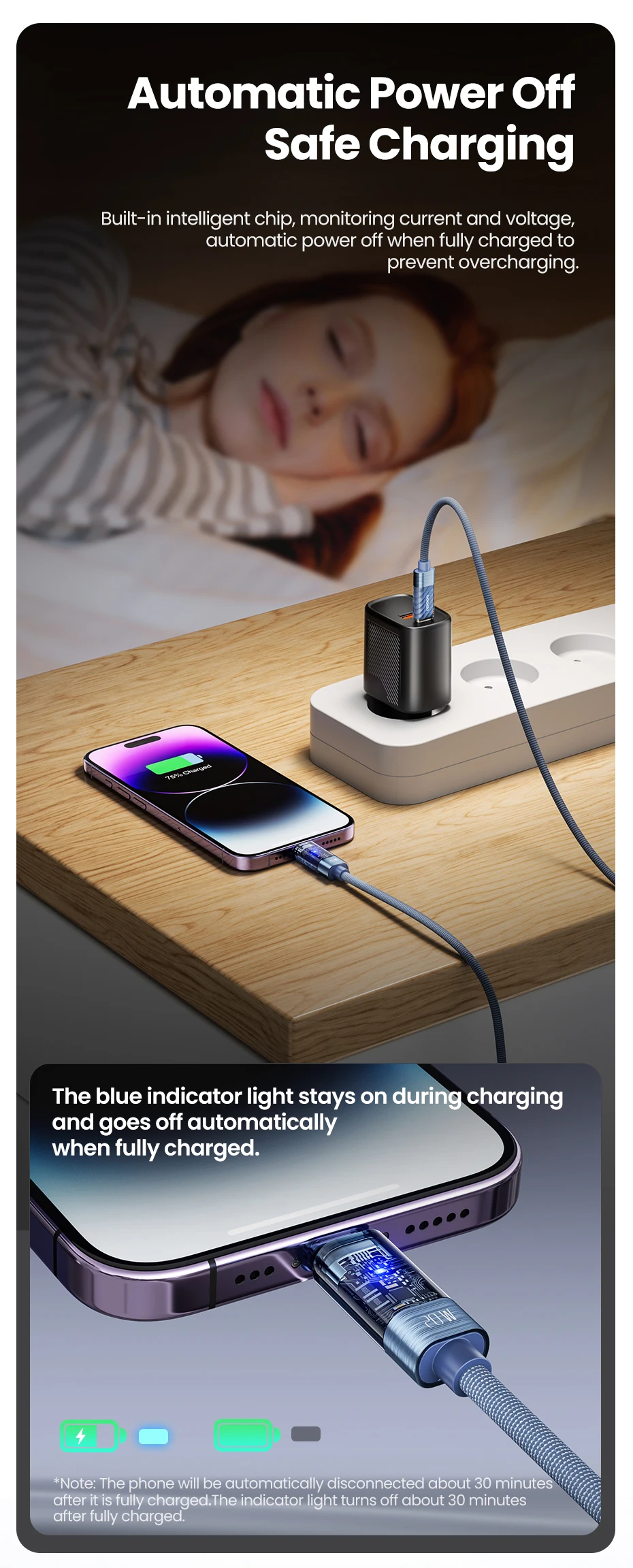 Automatic Power Off: Smart chip disconnects power when your device is fully charged
